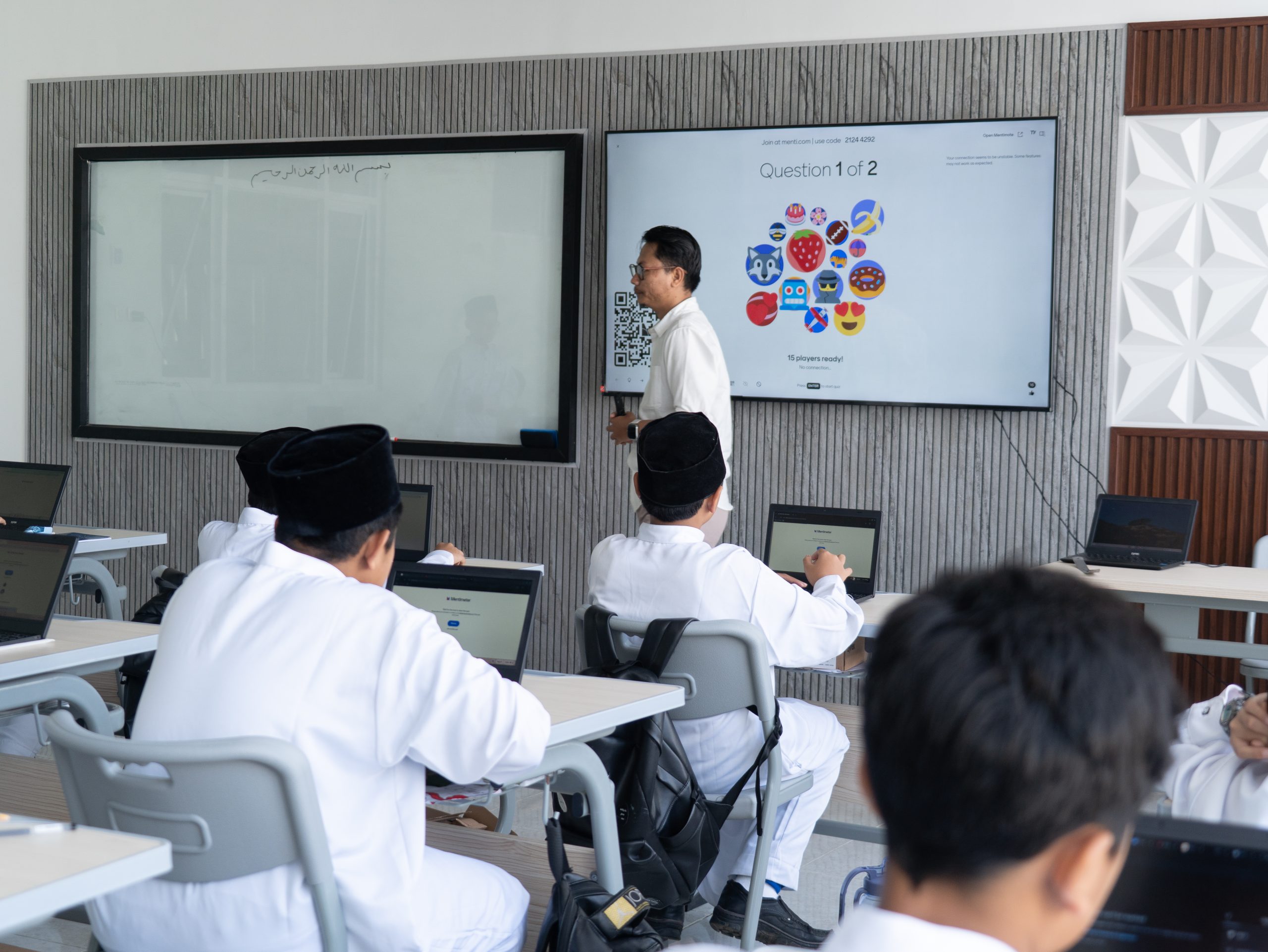 Ruang kelas yang diisi maksimal 25 santri/santriwati, sistem belajar menggunakan Cromebook/laptop dan fasilitas penunjang lainnya